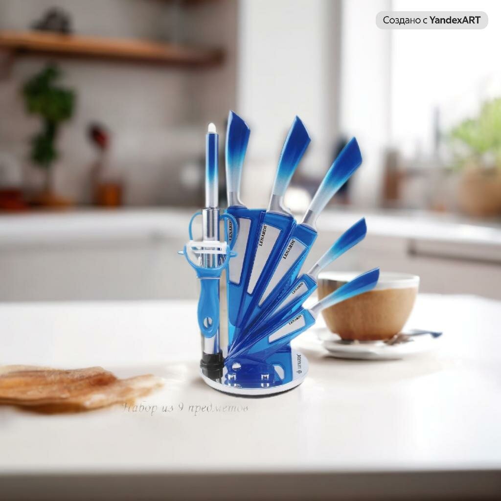 Набор 9 предметов Ножи Ленарди ножницы, мусат, овощечистка, подставка, нержавеющая сталь