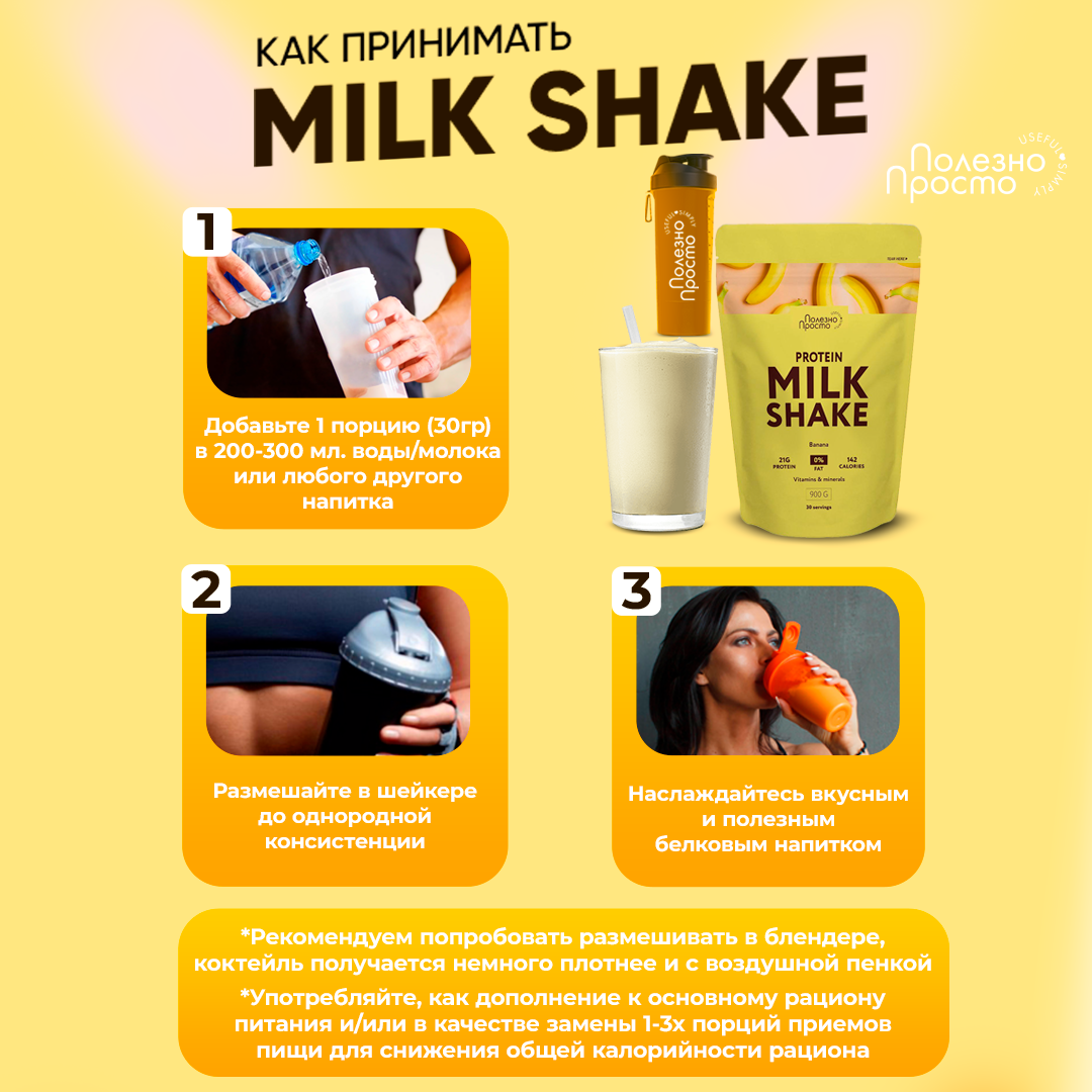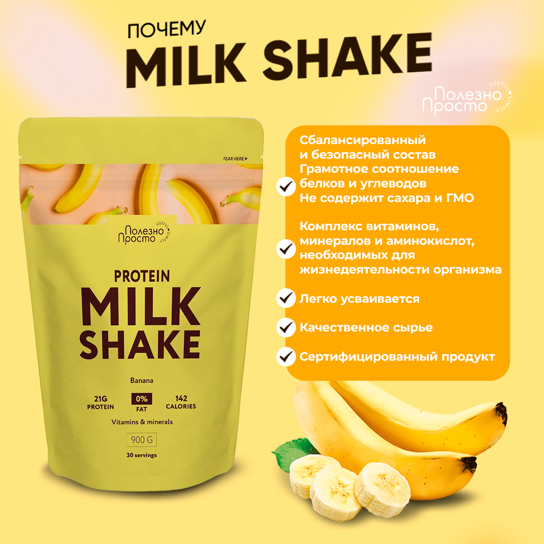 Протеиновый коктейль Полезно Просто, коктейль для похудения с л карнитином, молочный коктейль со вкусом банана