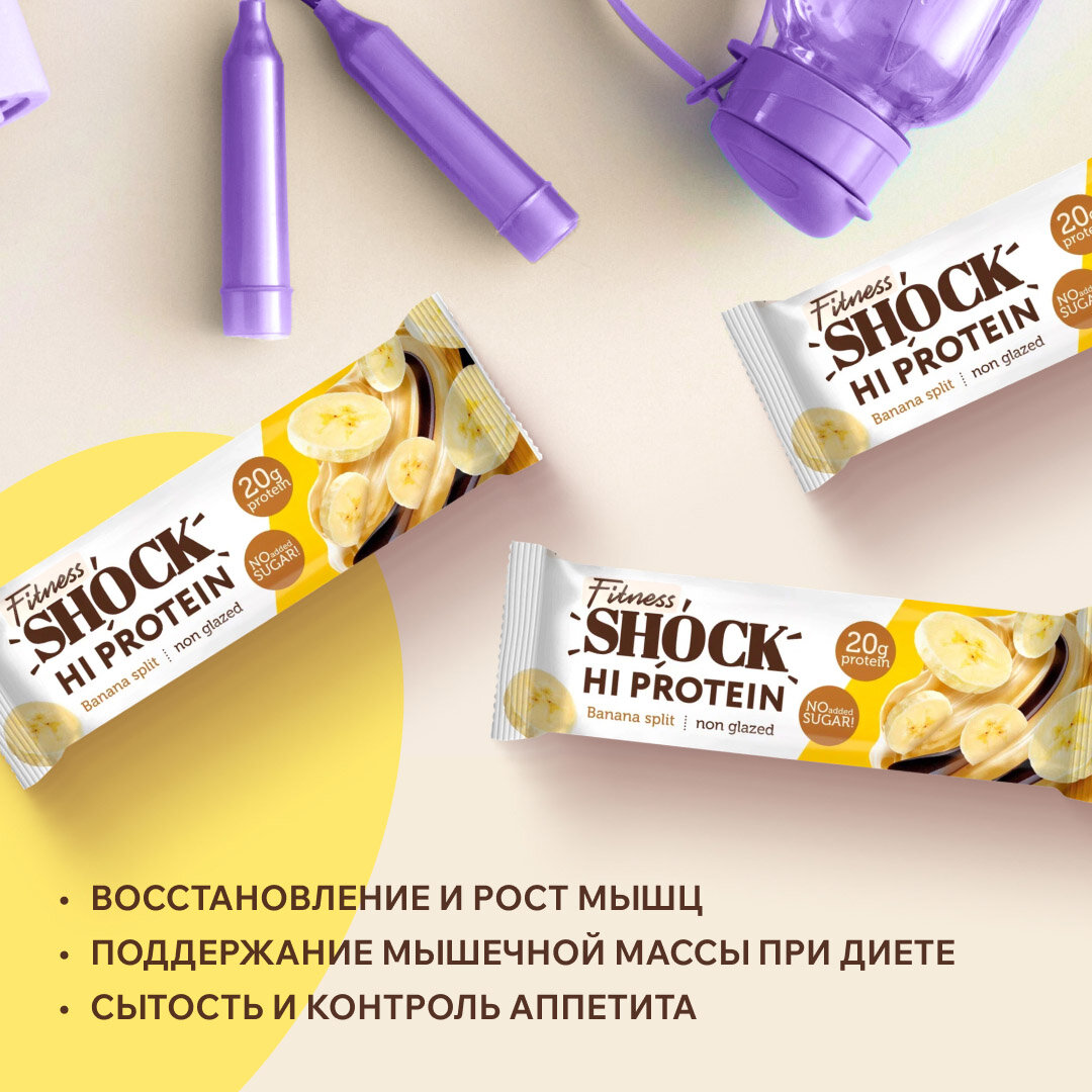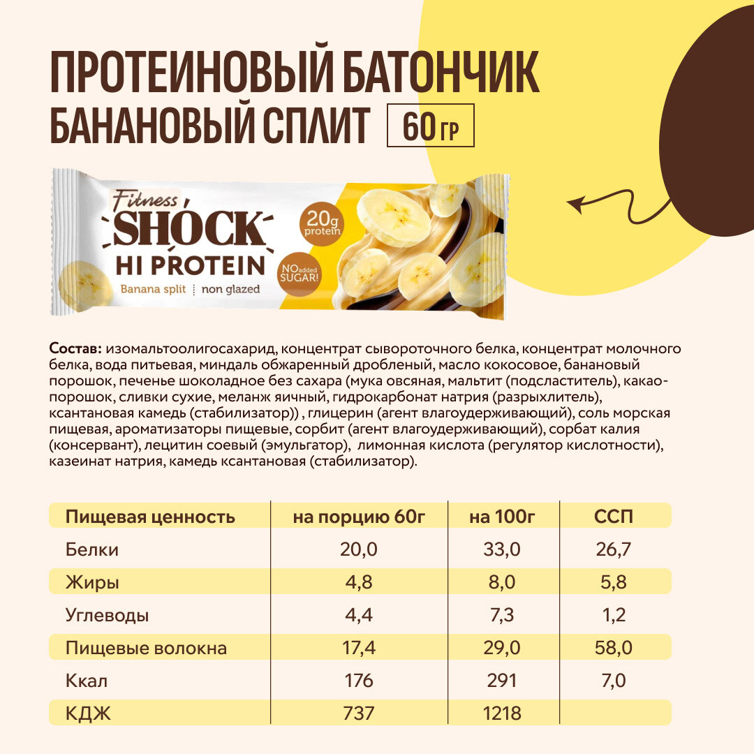 Купить Протеиновые батончики без сахара "Банановый сплит" FitnesSHOCK 60 гр, 12 шт