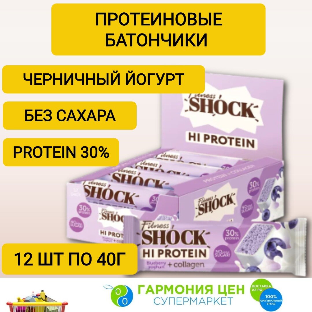 Протеиновые батончики без сахара Черничный Йогурт FitnesSHOCK 12 шт по 40 гр интересное: