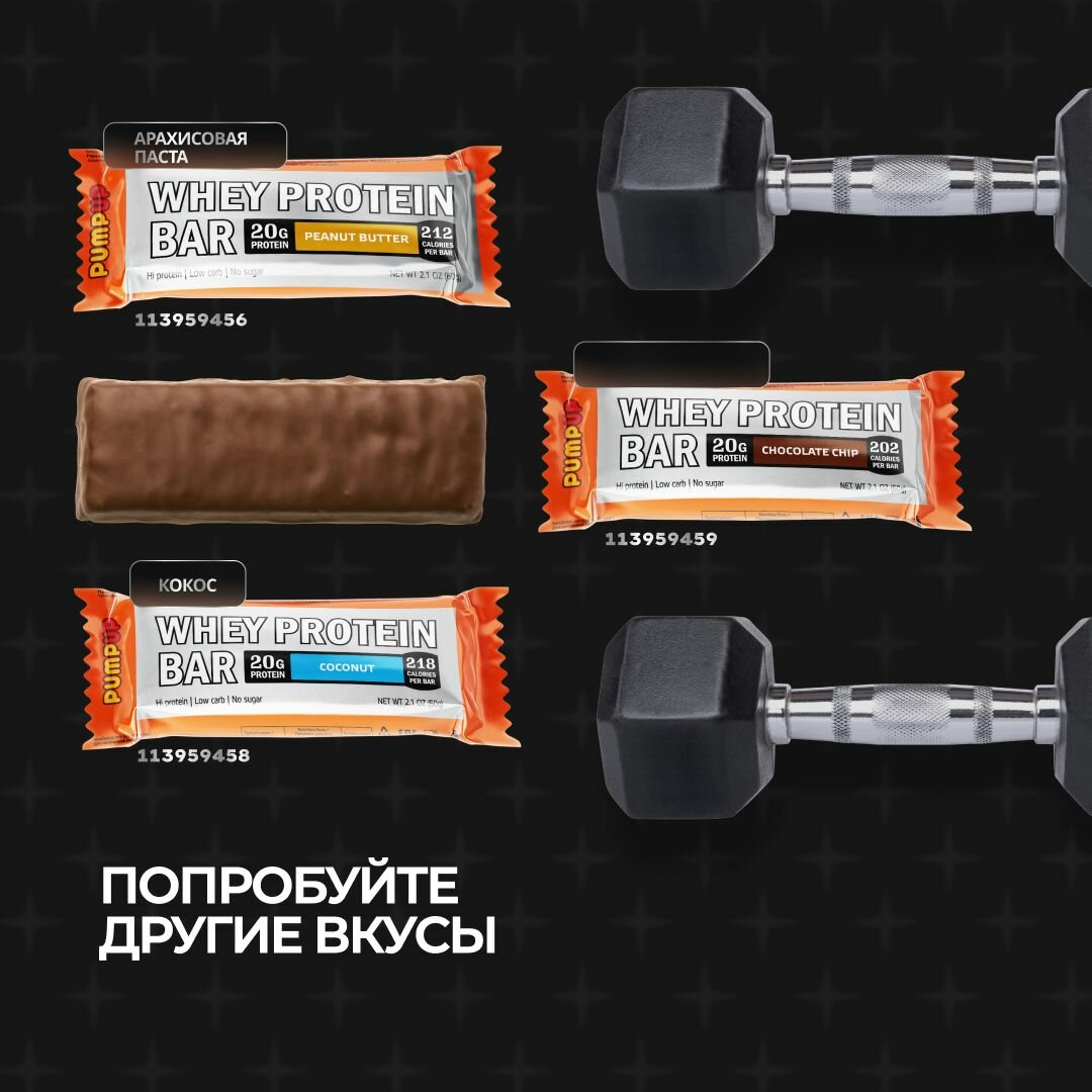 Протеиновые батончики Pump Up/Whey Protein, вкус "Арахис и Шоколад", 12 штук по 60 г