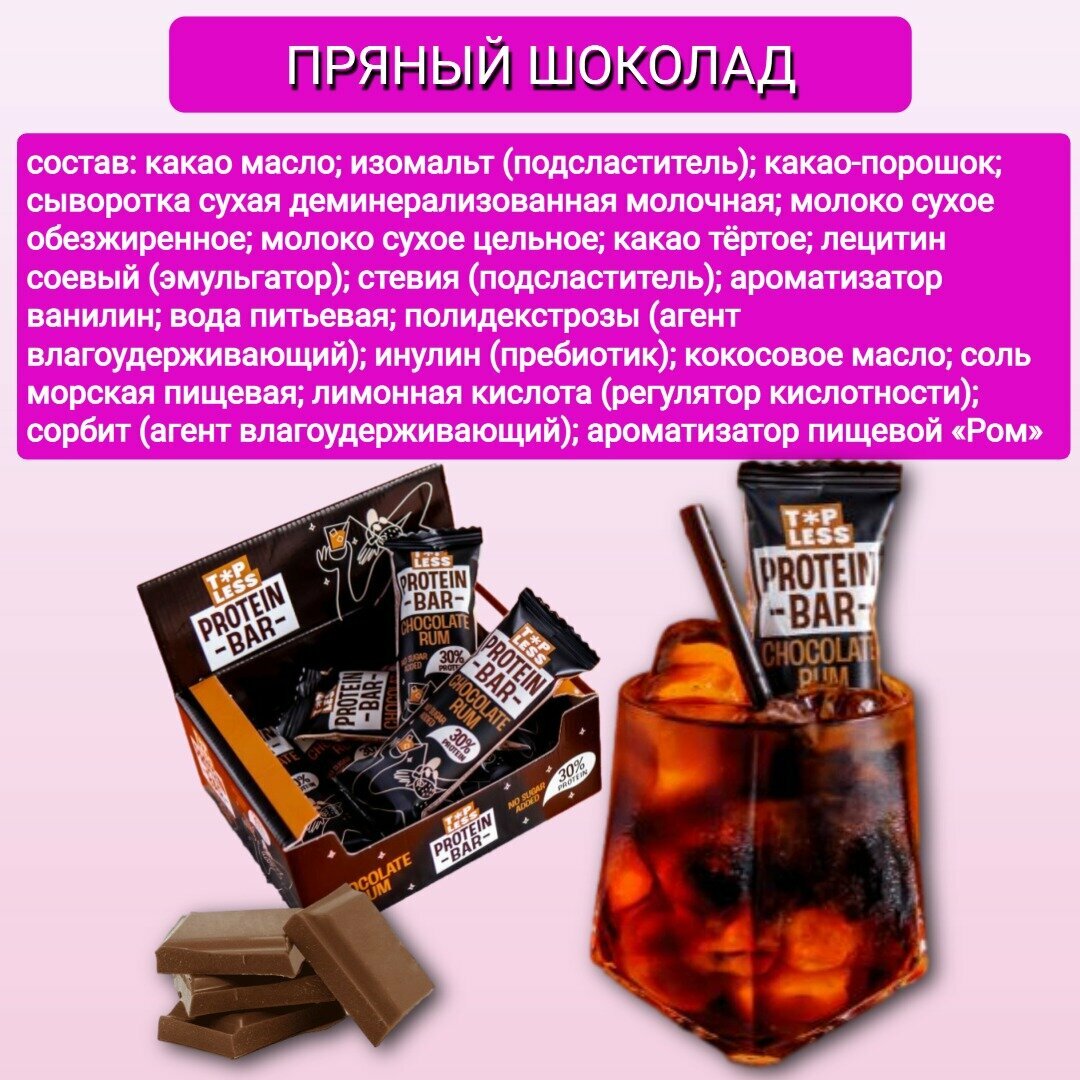 Батончики протеиновые COCKTAIL TopLess Шоколад и ром FitnesSHOCK без сахара 40гр 12 шт