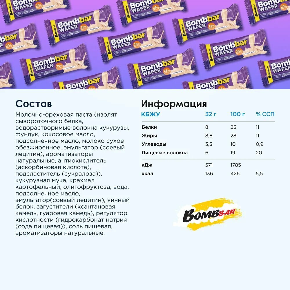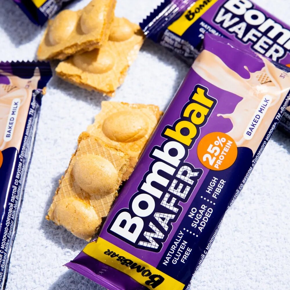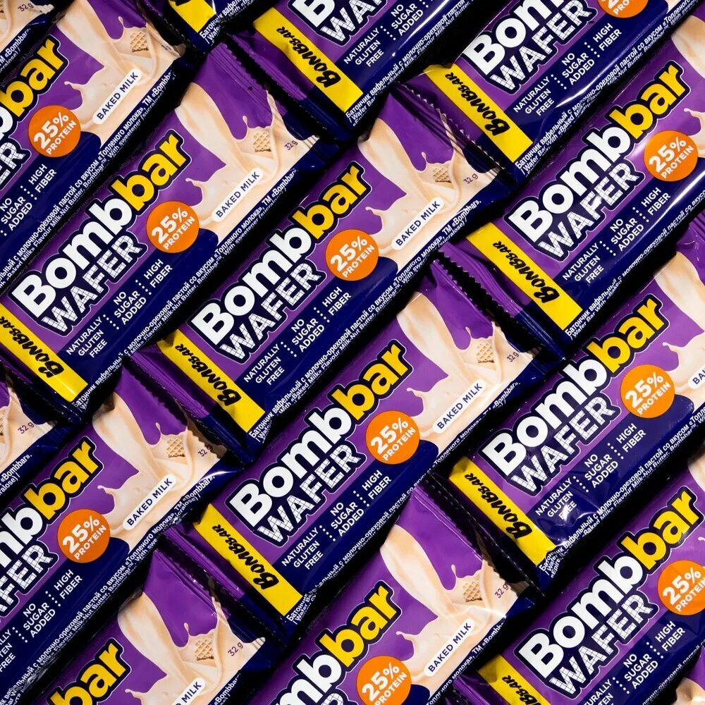 Купить Батончик Bombbar Wafer, 20 шт по 32 г, вкус: топленое молоко