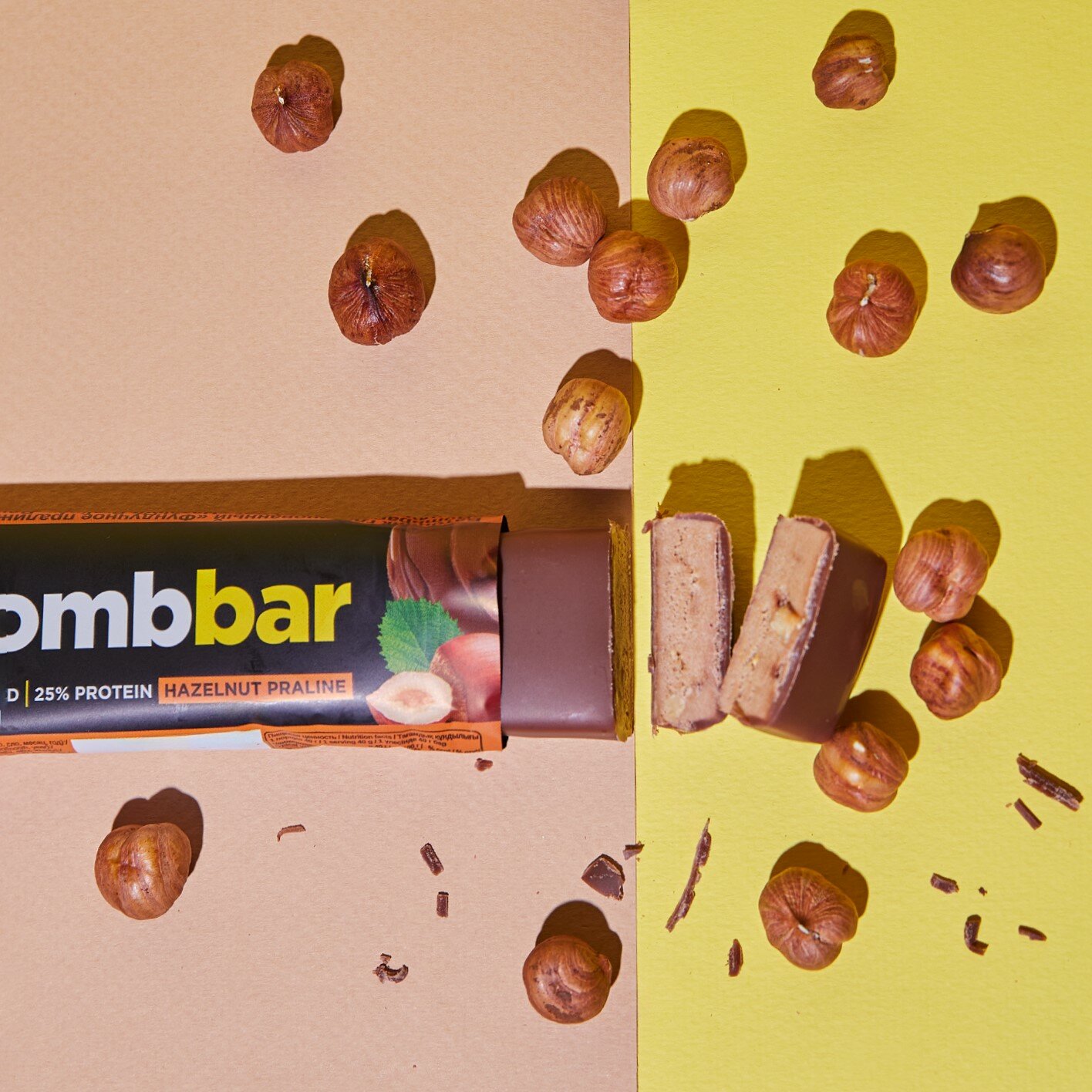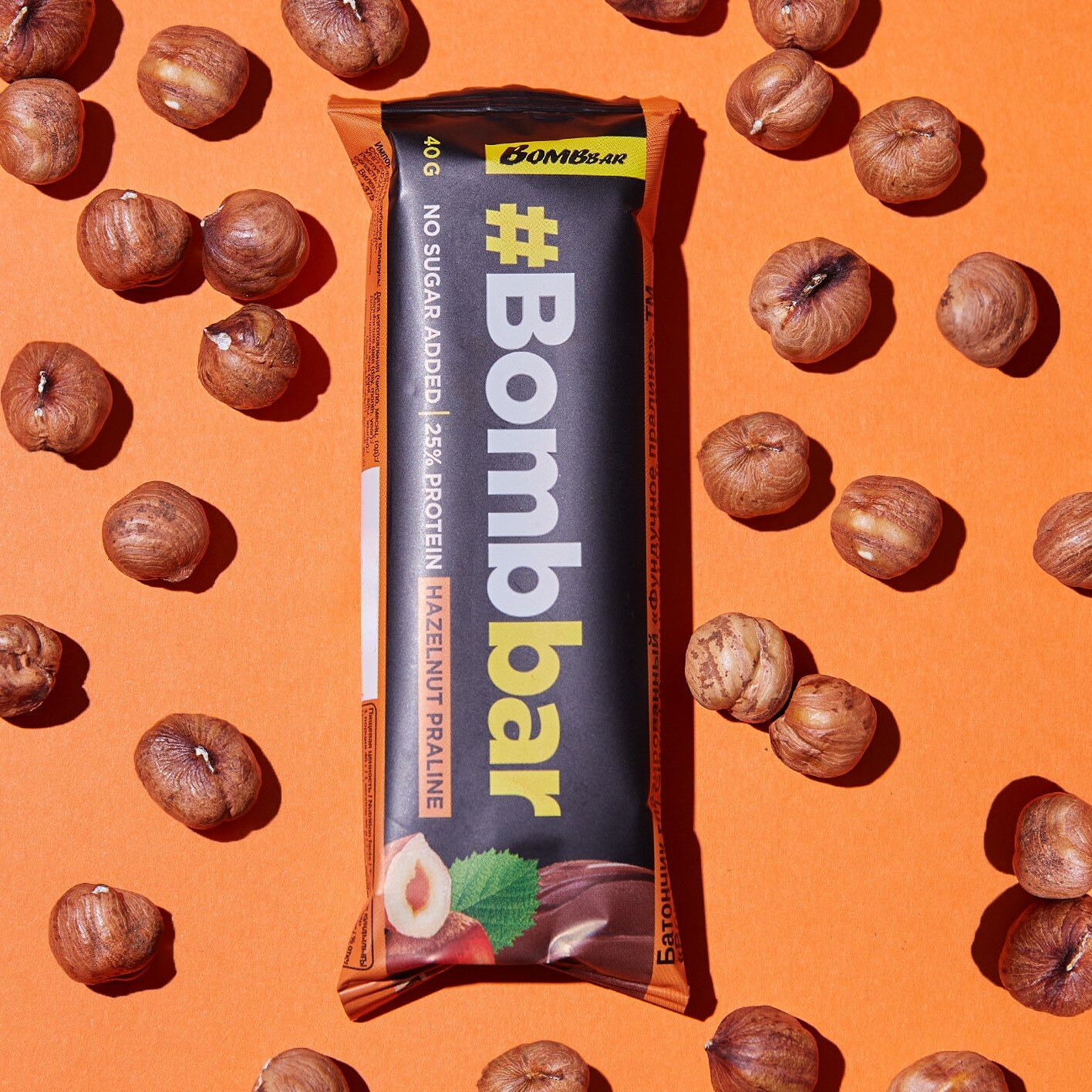 BombBar протеиновый батончик 60 г, 20шт (Шоколад фундук) без сахара