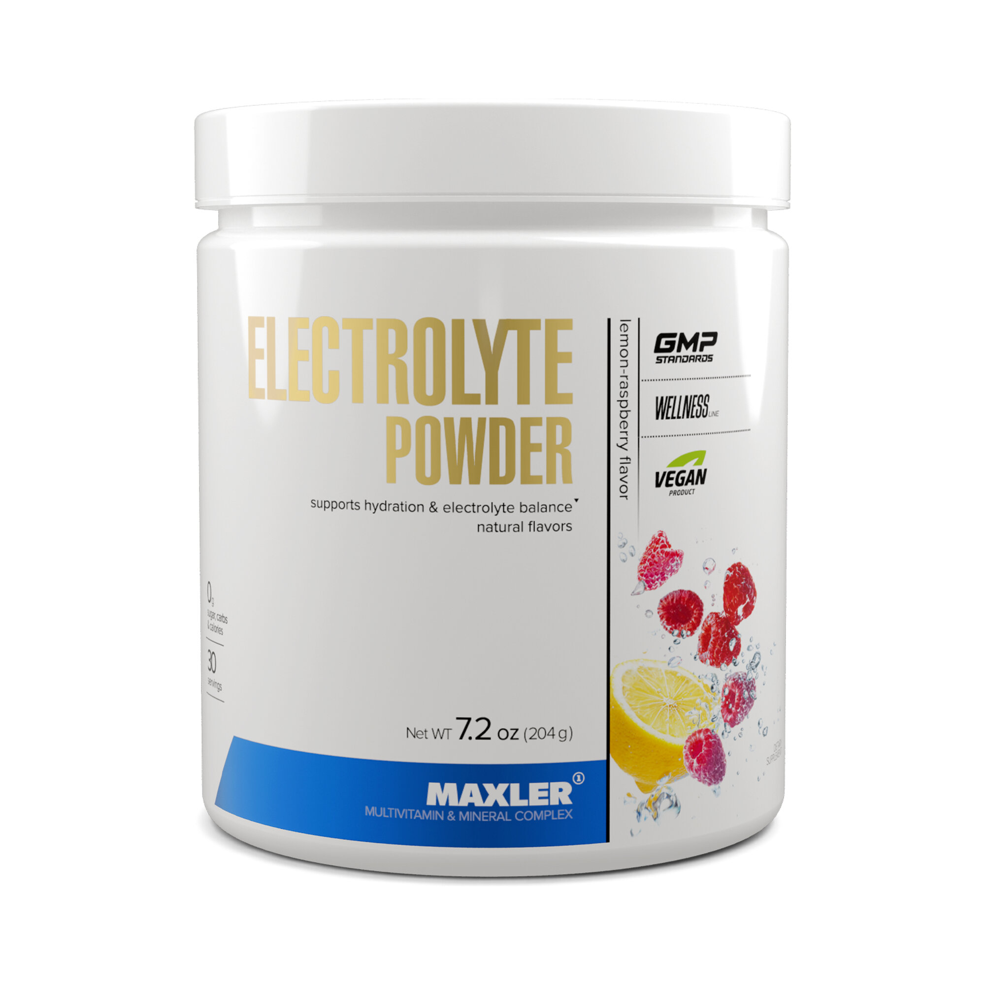 Электролиты Maxler Electrolyte Powder, вкус лимон-малина, 204 г, поддержка электролитного баланс, комплекс микроэлементов