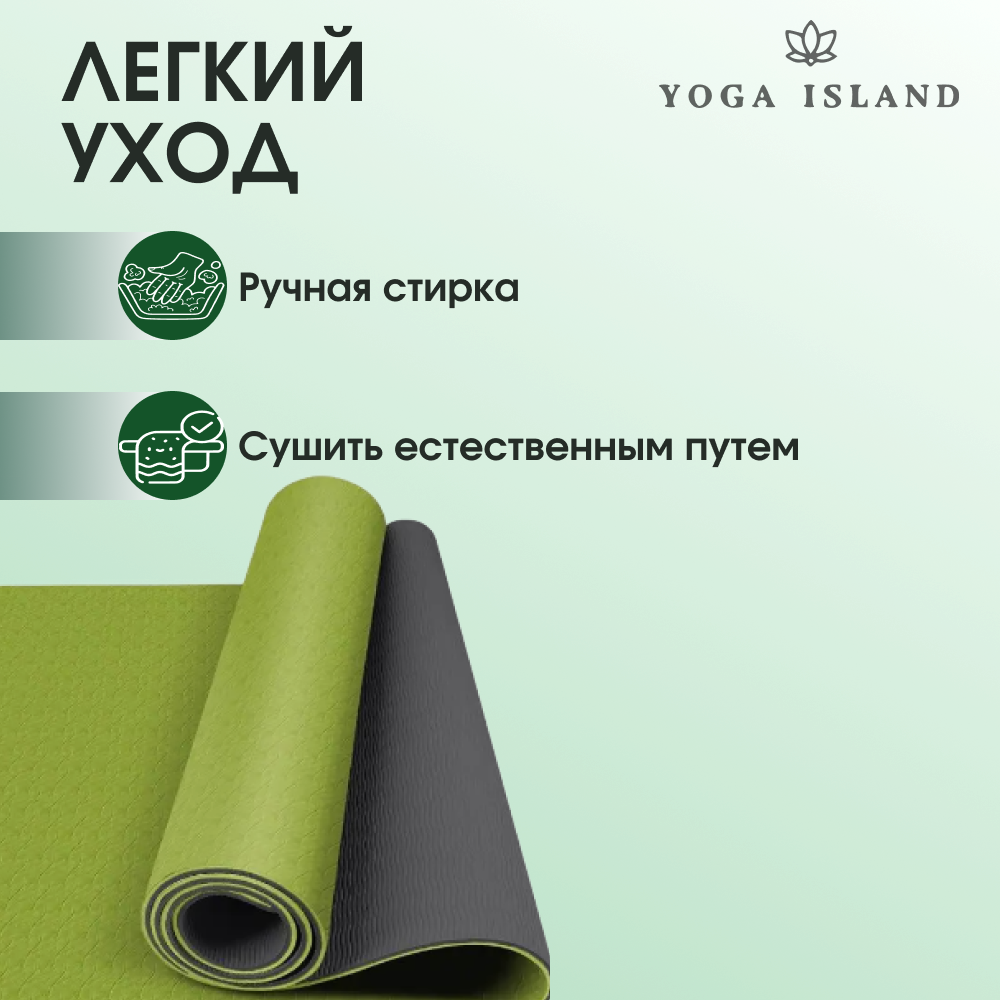Коврик для йоги и фитнеса Yoga Island, нескользящий, ТПЕ, 0.6 см, 183×61 см, светло-зеленый