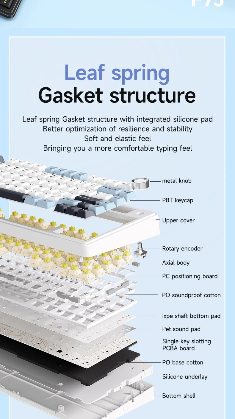 Беспроводная AULA F75 механическая клавиатура, 75% , с пятислойной прокладкой, Bluetooth / 2.4GHz / USB - C