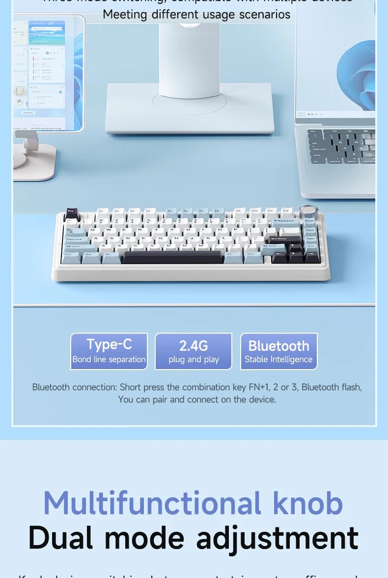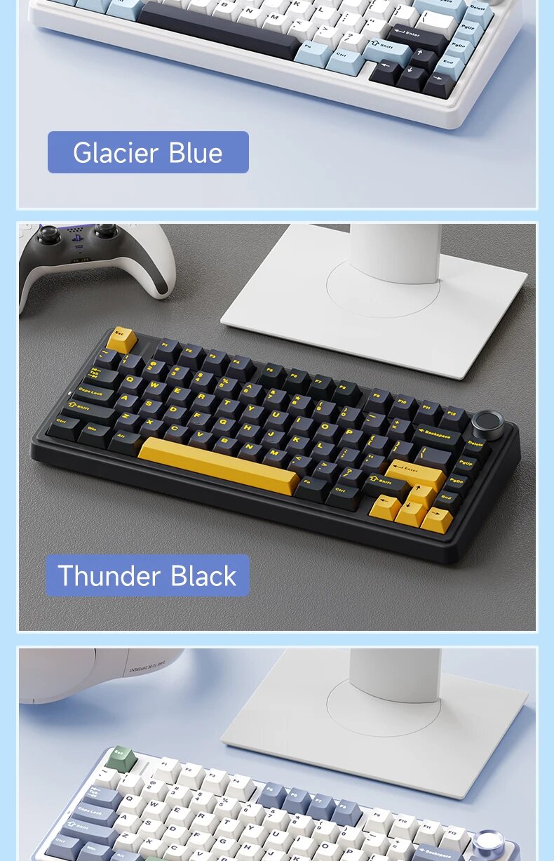 Беспроводная механическая клавиатура Epomaker x Aula F75 Blue, 75%, Bluetooth 5.0, 2.4Ghz, USB Type-C, Английская раскладка