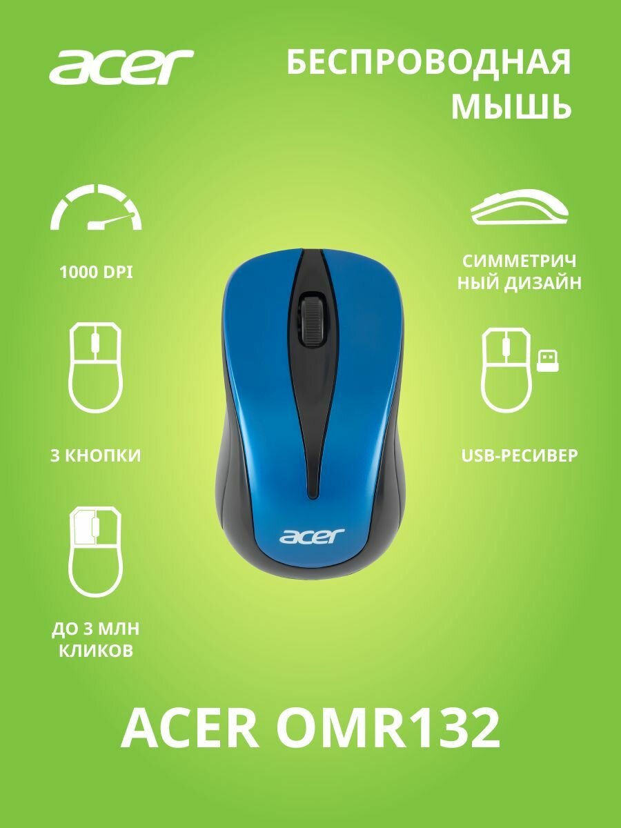 Мышь Acer OMR132, оптическая, беспроводная, USB, синий и черный [zl.mceee.01f]