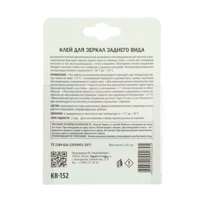 Клей для зеркал заднего вида 2х0,5гр. KR-152 Kerry
