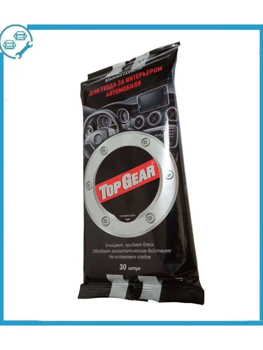 Очищающие влажные салфетки Top Gear для салона авто, в упаковке 30 штук интересное: