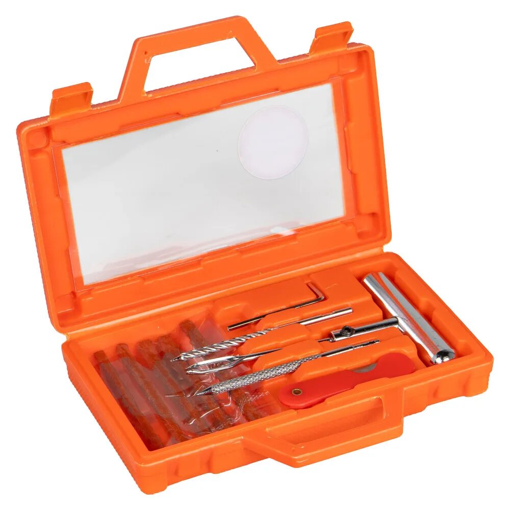 Ремкомплект для б/к шин в кейсе (шило для жгута + напильник + спиральное, 5 жгутов, нож) (ATRK109)