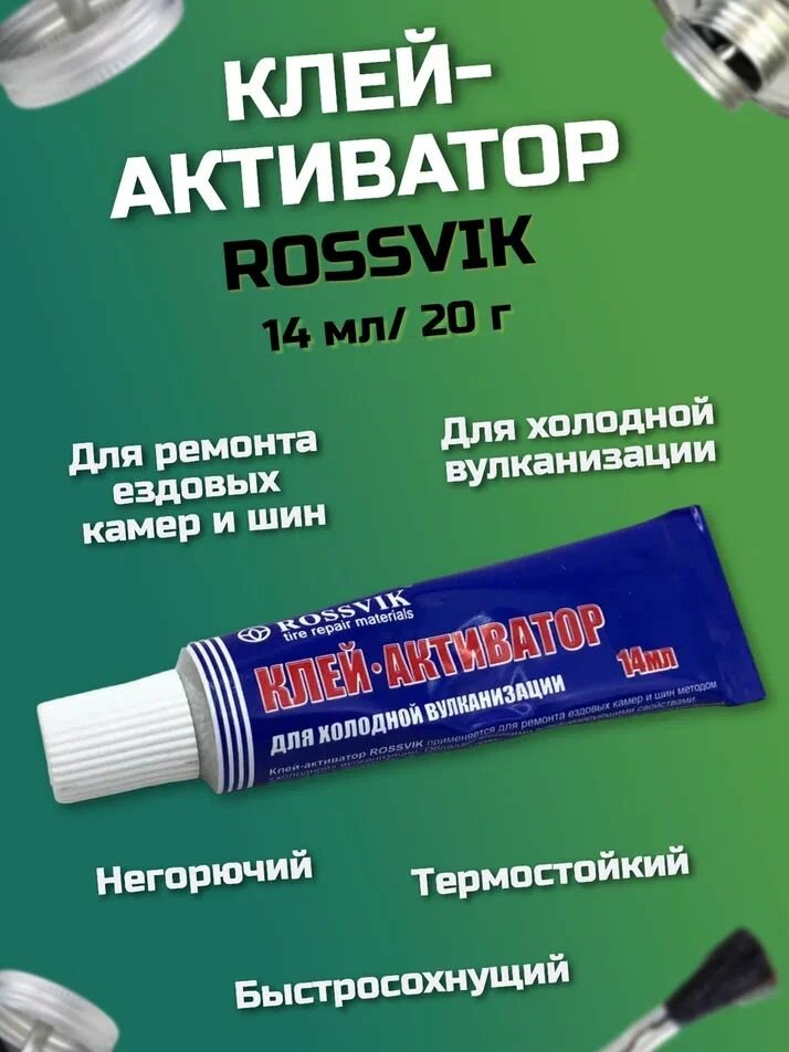 Ниже Вы можете прочитать отзывы на Клей Rossvik холодной вулканизации, активатор, 14мл/20г туба, для ремонта шин, ознакомится с подробными характеристиками, посмотреть интересные обзоры и фотографии на Клей Rossvik холодной вулканизации, активатор, 14мл/20г туба, для ремонта шин.