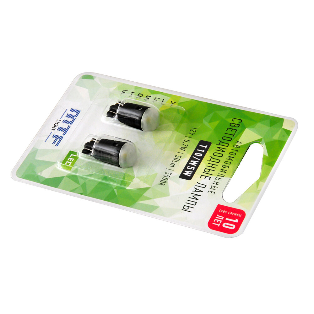 Светодиодные лампы MTF Light серия FIREFLY, W5W / T10, 12В, 0.7Вт, 5500К(холодный белый), Тайвань. Комплект 2шт.