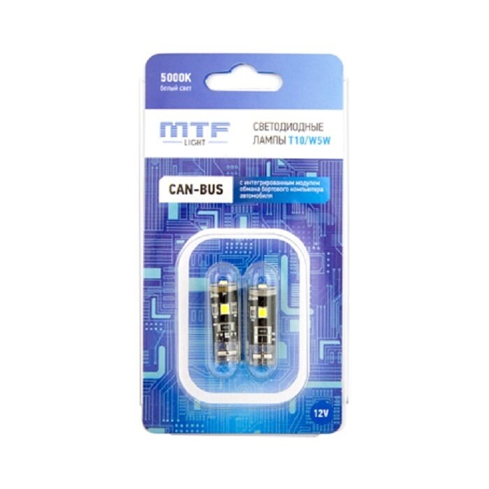 Светодиодная лампа MTF Light серия CAN-BUS, W5W/T10, 5000К(белый свет), 2шт