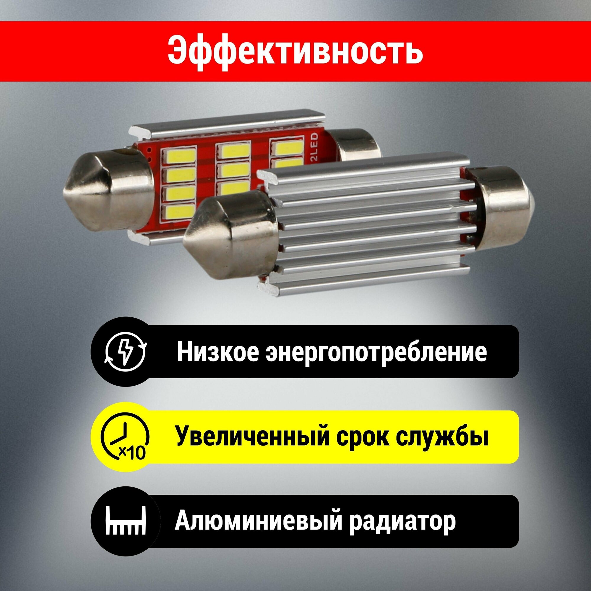 СохранитьЛампа светодиодная C5W 41мм / T11 (SV8.5) автомобильная 2 шт, 12V, 5000K, 12 Led для салона, багажника, подсветки номера Clim Art интересное: