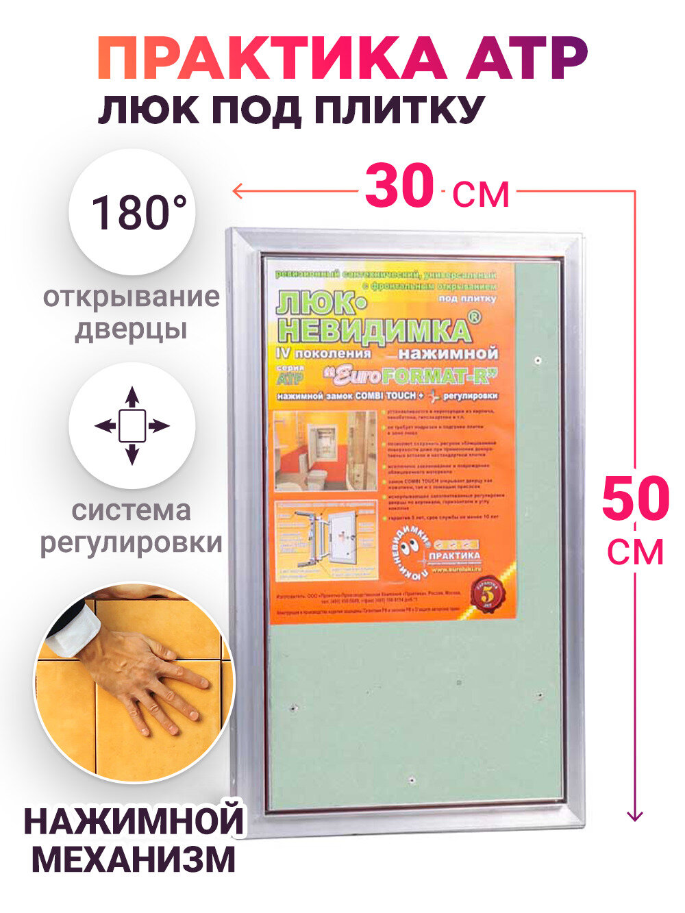 Сантехнический ревизионный люк под плитку нажимной АТР 40x70 см Евроформат ПРАКТИКА