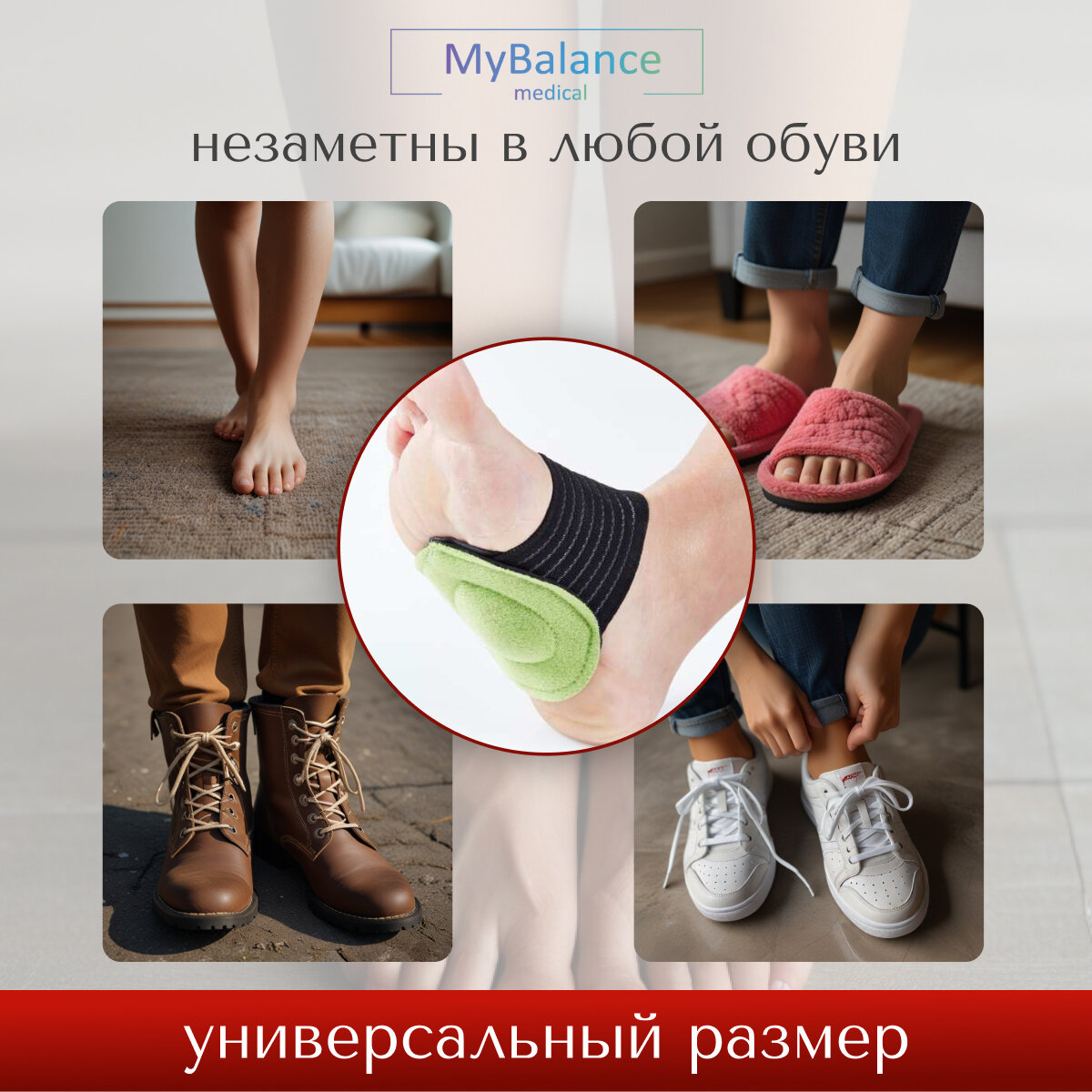 Ортопедические супинаторы MyBalance, с подушечкой под стопу, цвет черно-зеленый, универсальный размер, 2 шт интересное: