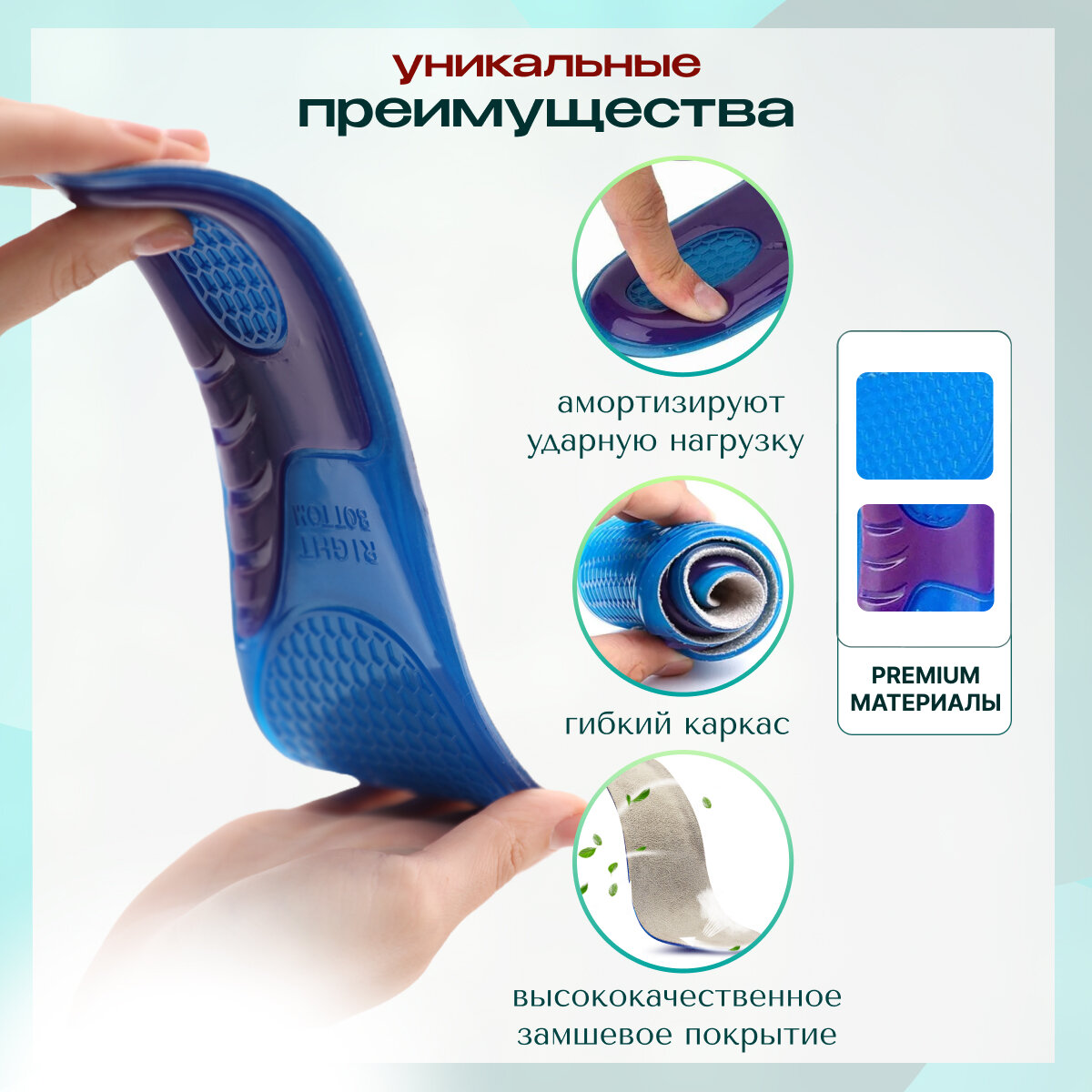 Стельки ортопедические MyBalnce, гелевые, от пяточной шпоры, женские, синие, размер 33-36 интересное: