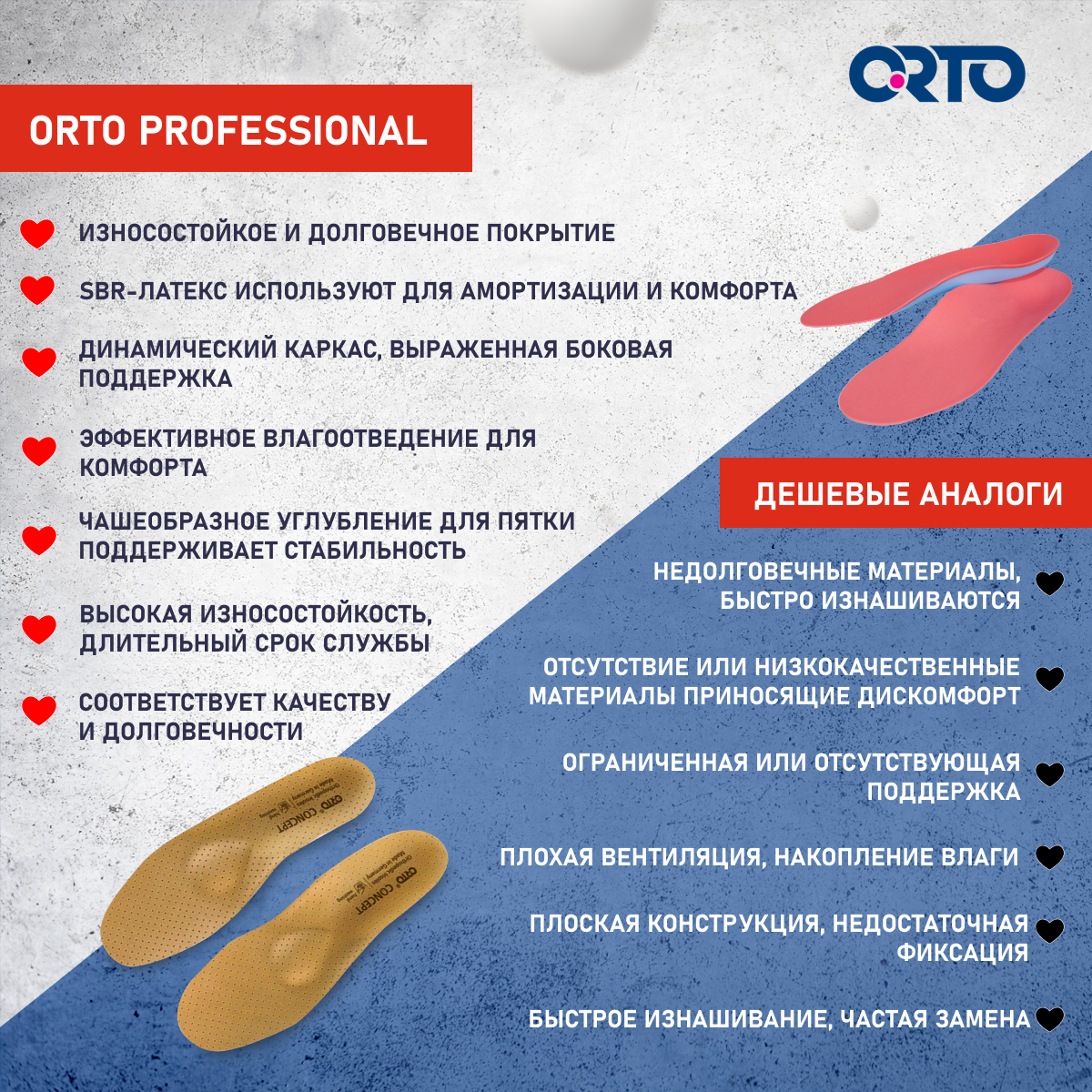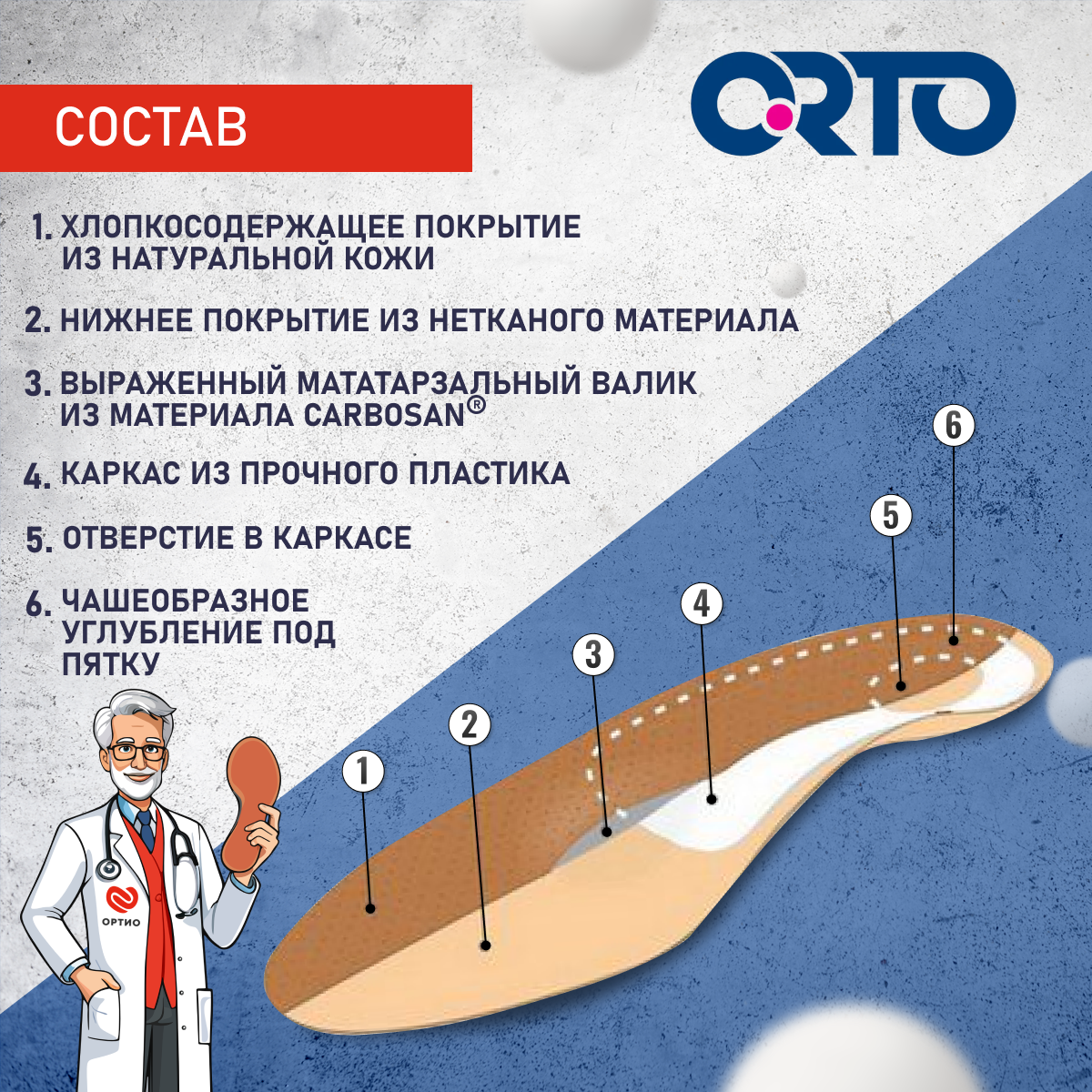 ORTO Стельки ортопедические на п/жесткой основе, кожа ORTO CONCEPT, Размер 38