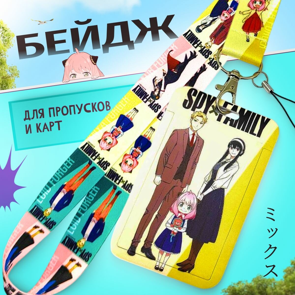 СохранитьЧехол для пропуска с широкой лентой. Бейджик для школьника. Держатель для пропуска вертикальный SKY Family аниме интересное: