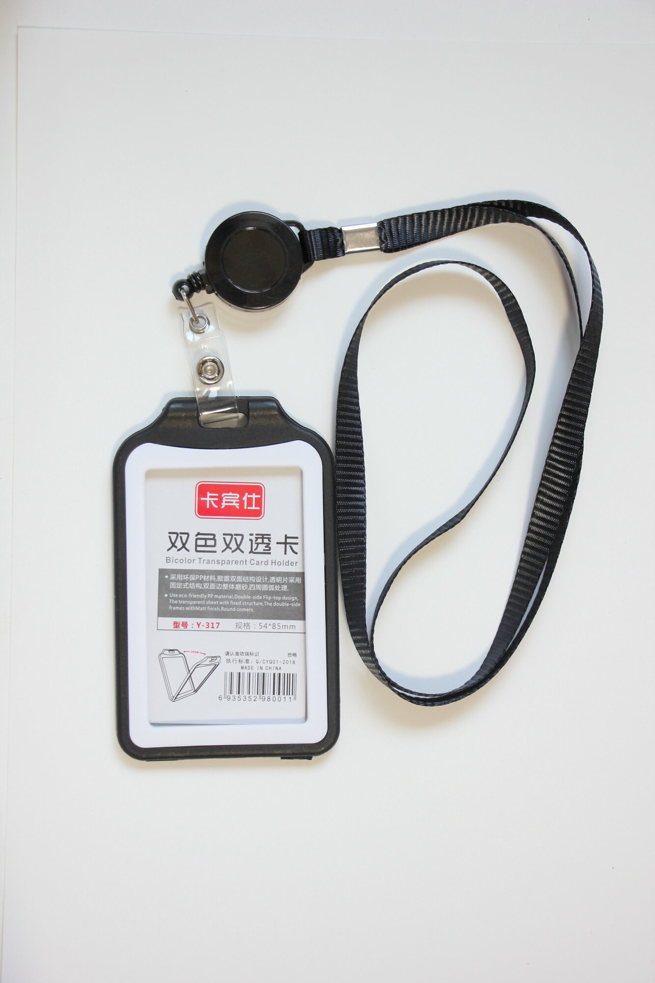 Чехол для пропуска с лентой катушкой (чёрный)