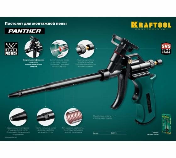 Купить Пистолет для монтажной пены KRAFTOOL Panther полное тефлоновое покрытие , 06855_z02