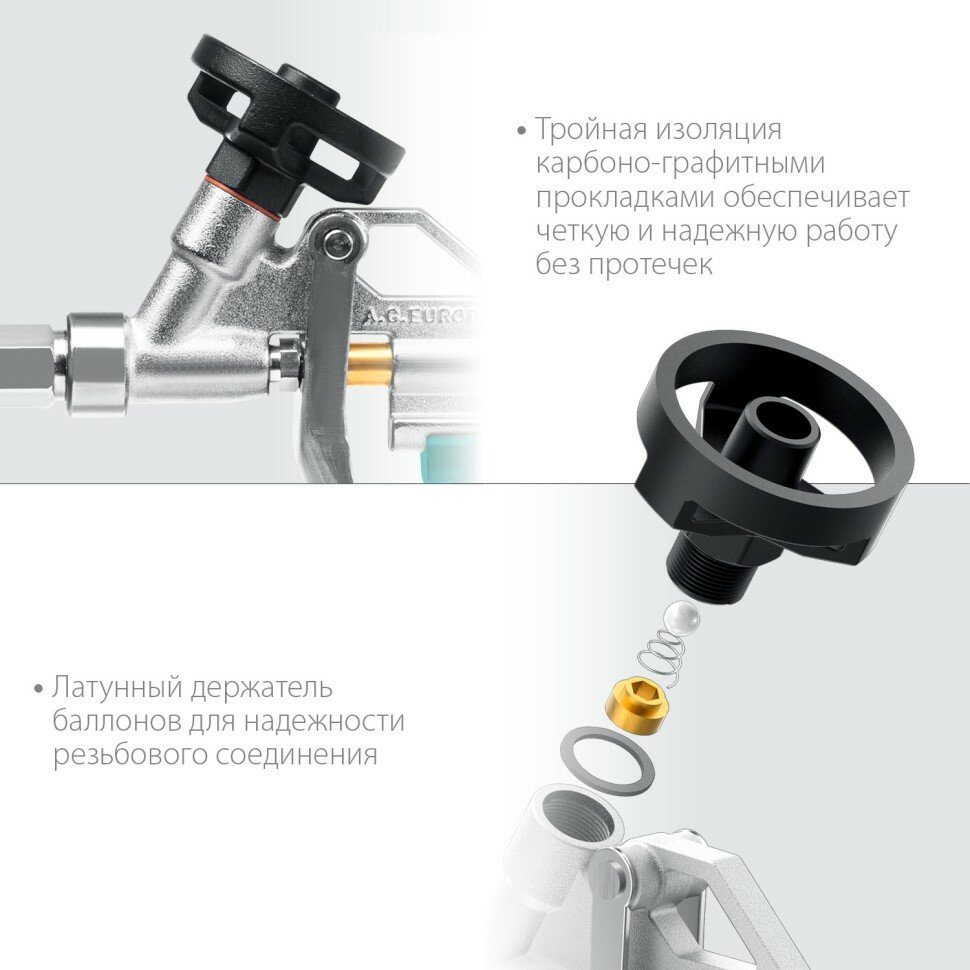 | Особенности | игольчатый клапан, тефлоновое покрытие |