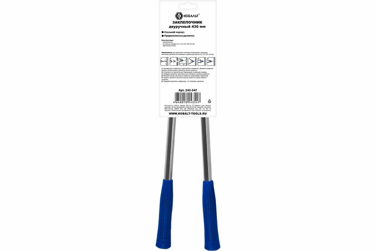 Заклепочник кобальт 430 мм, двуручный, заклепки 2,4-3,2-4,0-4,8-6,4 мм, блистер интересное: