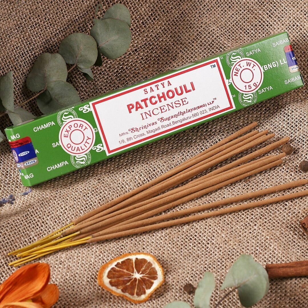 Аромапалочки Пачули Сатья, Patchouli Satya, 2 кор. по 15 палочек