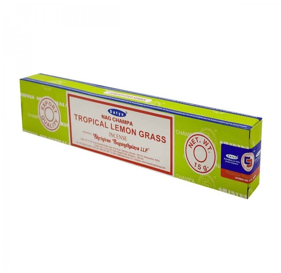 Аромапалочки Тропический Лимонник Сатья, Tropical Lemongrass Satya, 2 кор. по 15 палочек