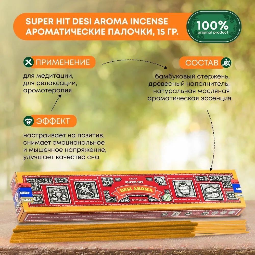 Купить Super Hit DESI AROMA Incense, Satya (Благовония серии Супер Хит, дези арома, Сатья), 15 г.