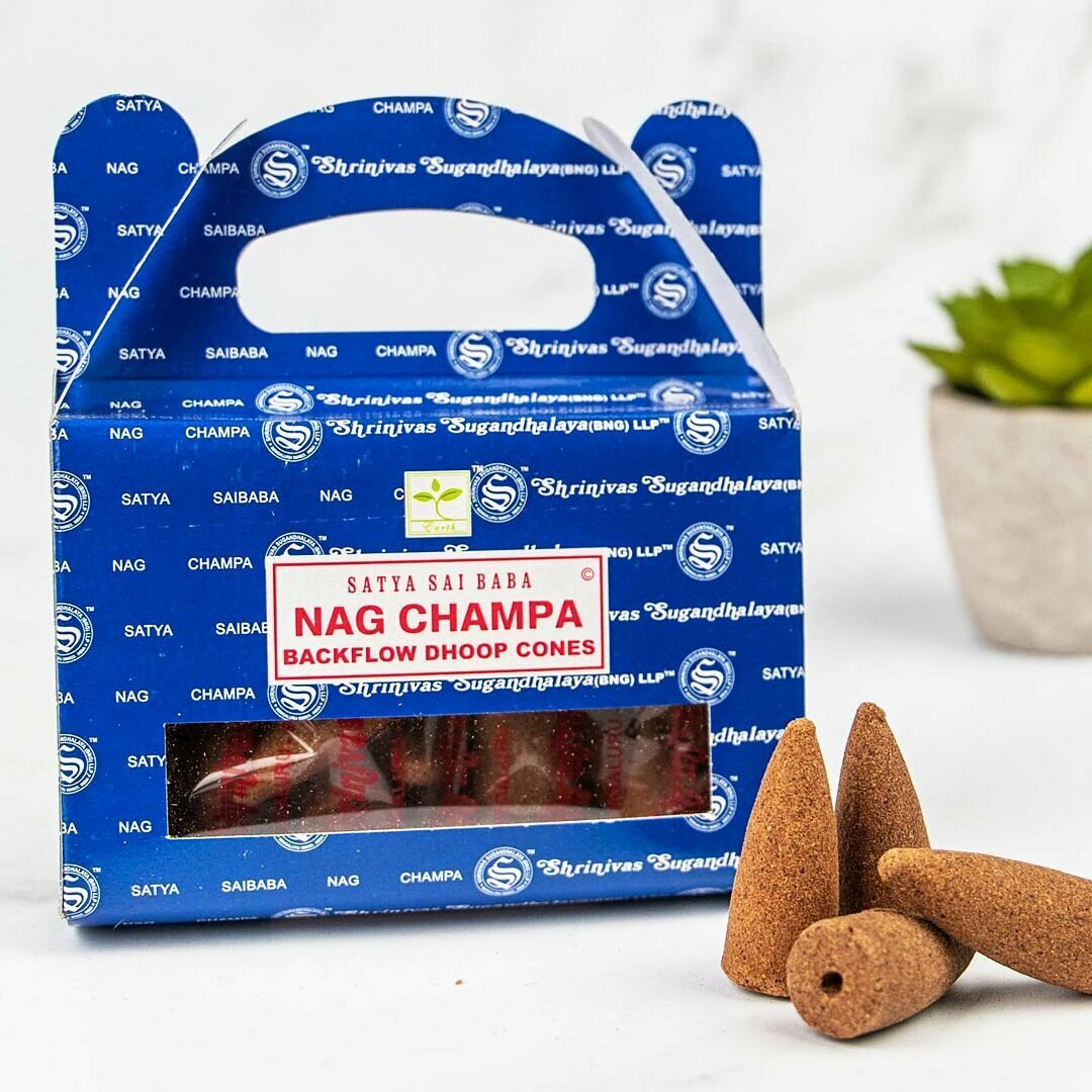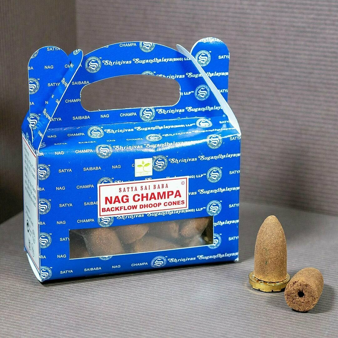Благовония конусы (стелющийся дым) Satya Nag Champa (Наг Чампа) - 10шт
