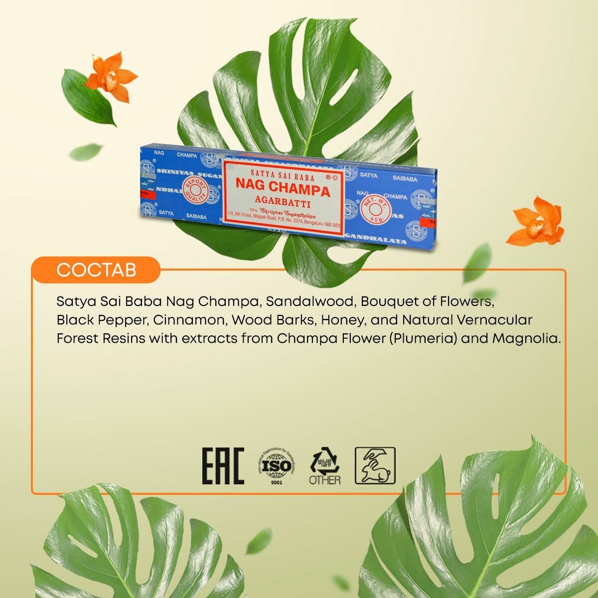 Благовония Satya NagChampa, наг чампа Сатья, ароматические палочки, индийские, для дома, медитации, 40г