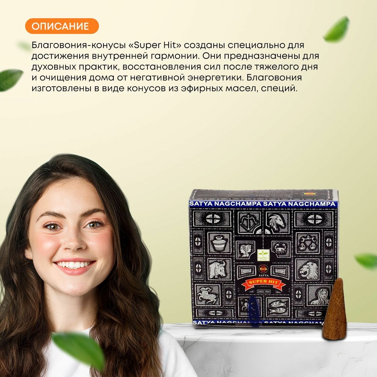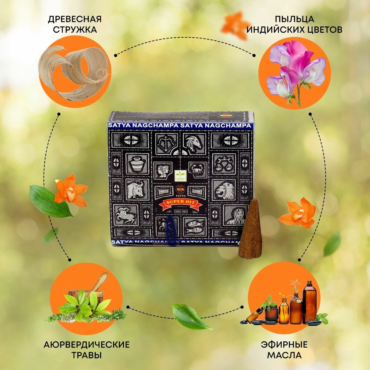 Купить Satya Супер Хит Бангалор - 12 шт, ароматические благовония, конусовидные, конусы с подставкой, Super Hit - Сатия, Сатья