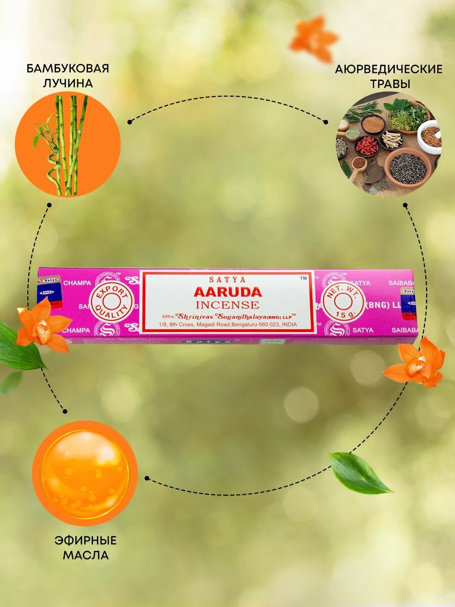 Купить Благовония Aaruda Incense (Аруда) Ароматические индийские палочки для дома, йоги и медитации, Satya (Сатья), 15г
