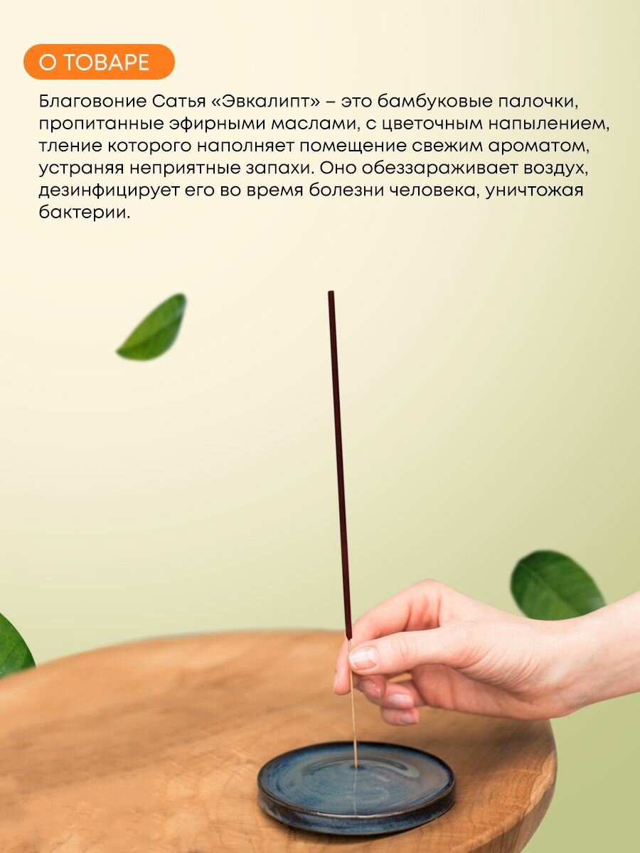 СохранитьБлаговония Eucalyptus Incense (Эвкалипт) Ароматические индийские палочки для дома, йоги и медитации, Satya (Сатья), 15г интересное: