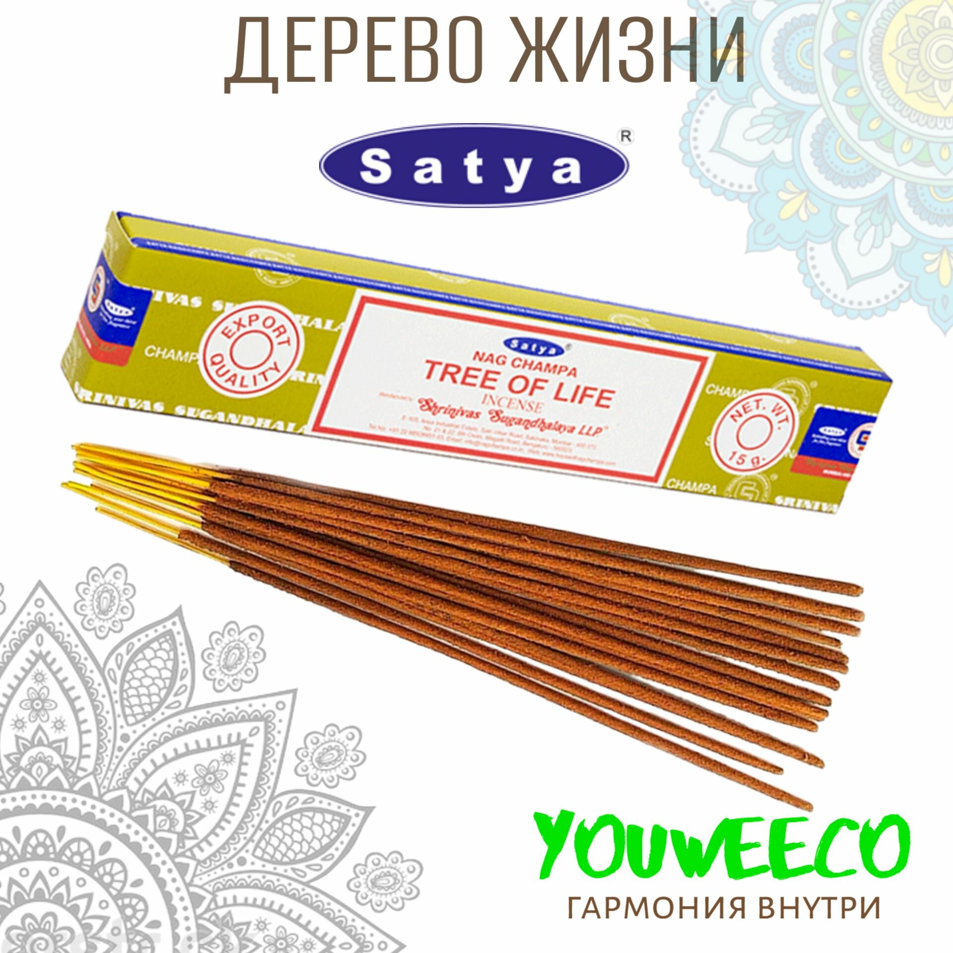 Купить Nag Champa TREE OF LIFE Incense, Satya (Благовония НАГ чампа дерево жизни, Сатья), 15 г.