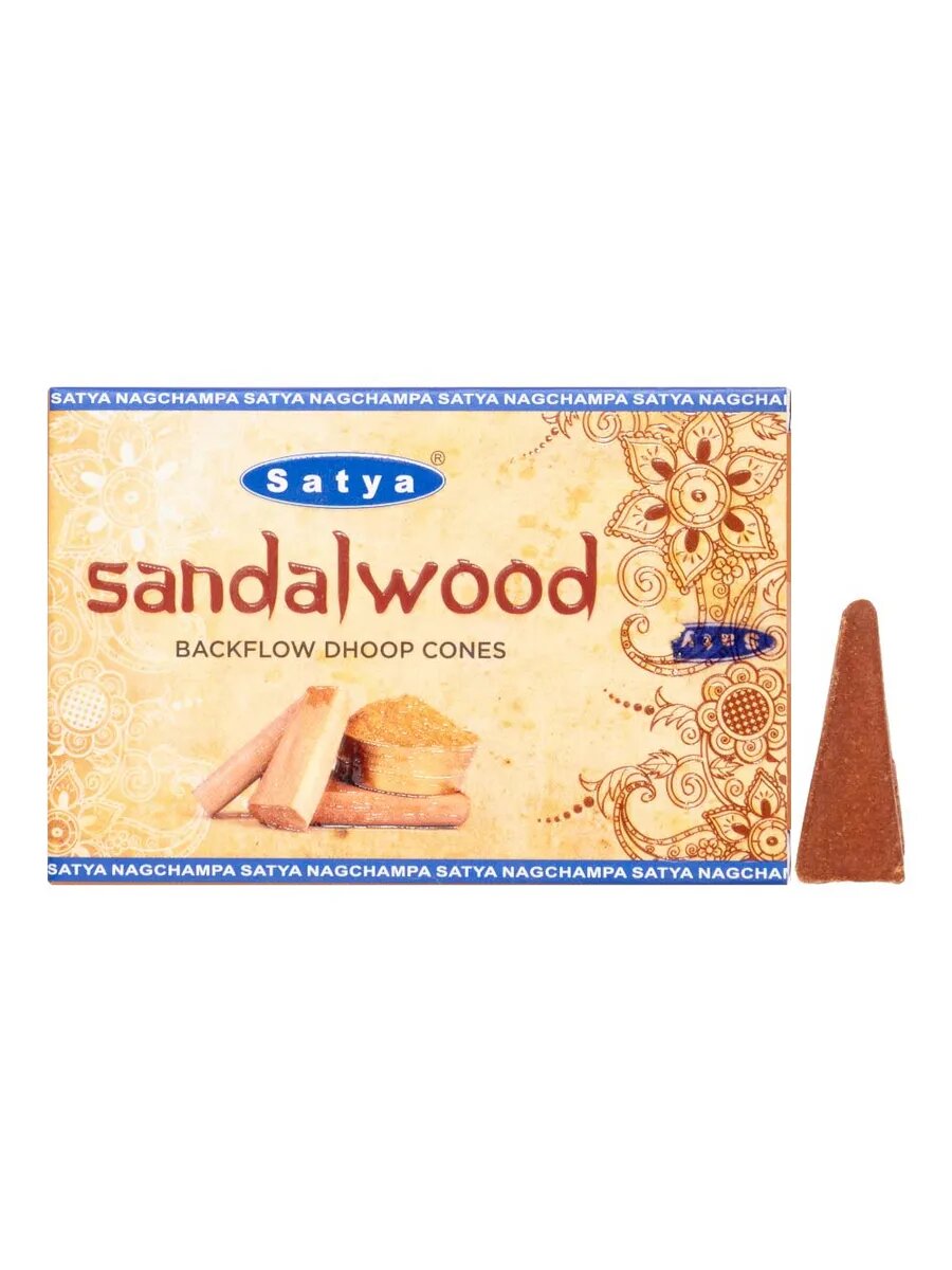 Купить Благовония Sandal Wood (Сандаловое дерево) Ароматические индийские конусы для дома, йоги и медитации, Satya Premium (Сатья Премиум), 10шт.