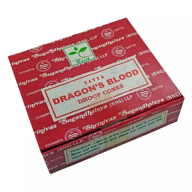 Купить Satya Кровь Дракона Бангалор - 12 шт, ароматические благовония, конусовидные, конусы с подставкой, Dragons Blood - Сатия, Сатья