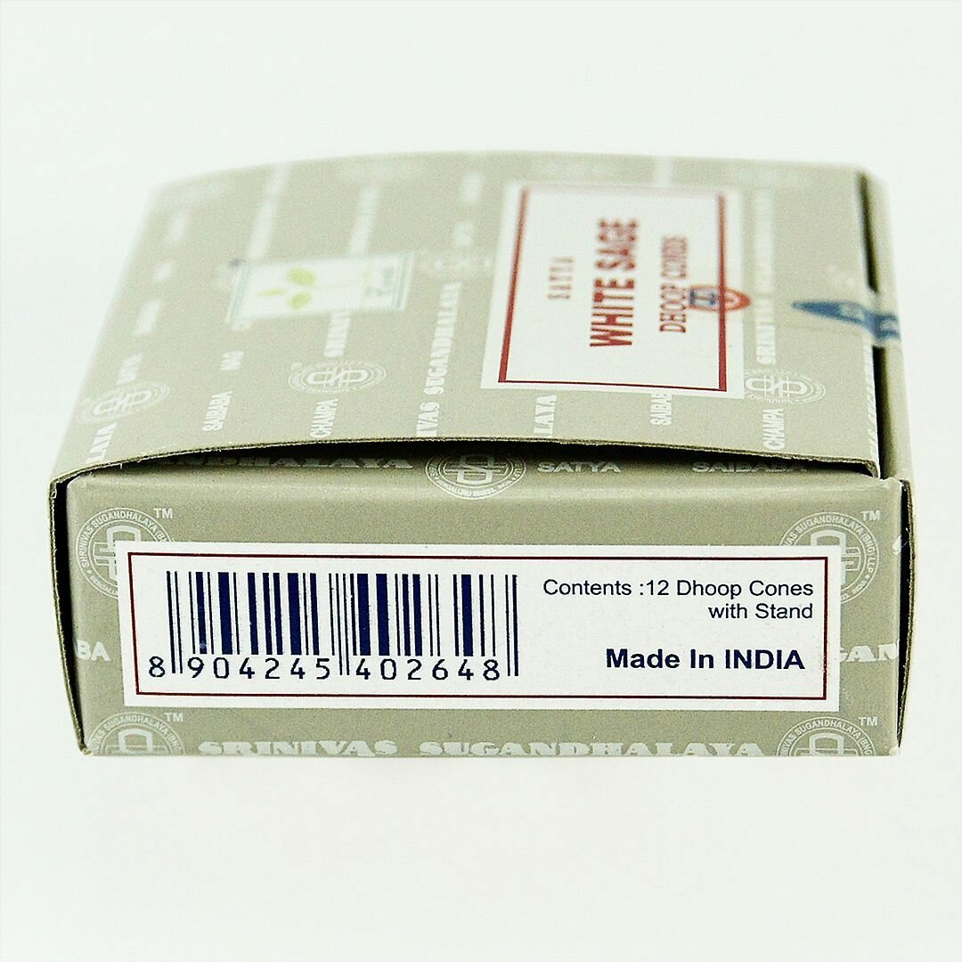 Индийские благовония стелющийся дым Сатья Белый Шалфей (Satya White Sage) натуральные ароматические благовония в форме пули для дома, йоги, медитации, релакса и ароматерапии 24 шт