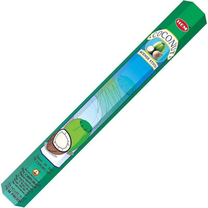 Благовония HEM "Coconut. Кокос ", 20 палочек в упаковке, шестигранник в упаковке
