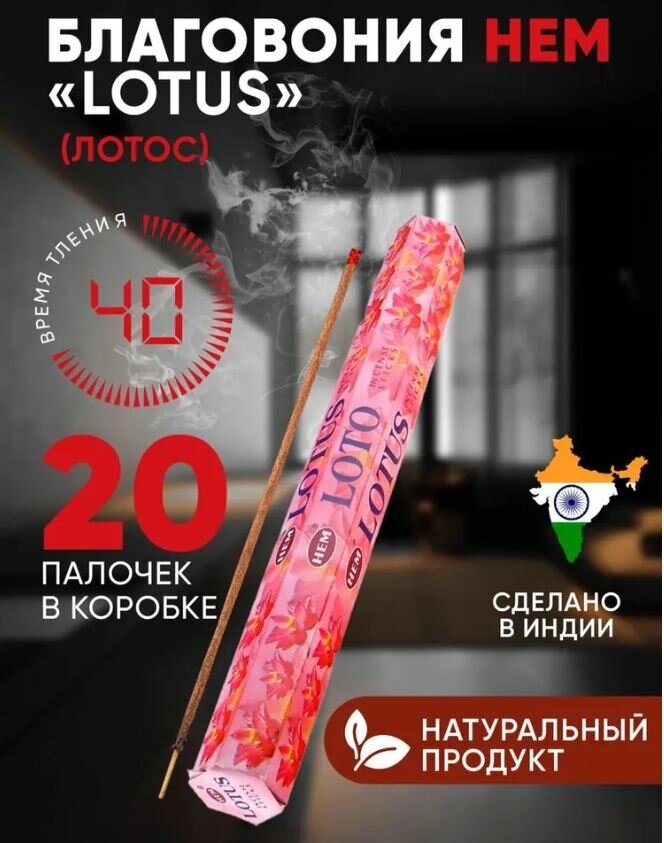 Купить Благовоние HEM "Lotus" (Лотус), 20 палочек