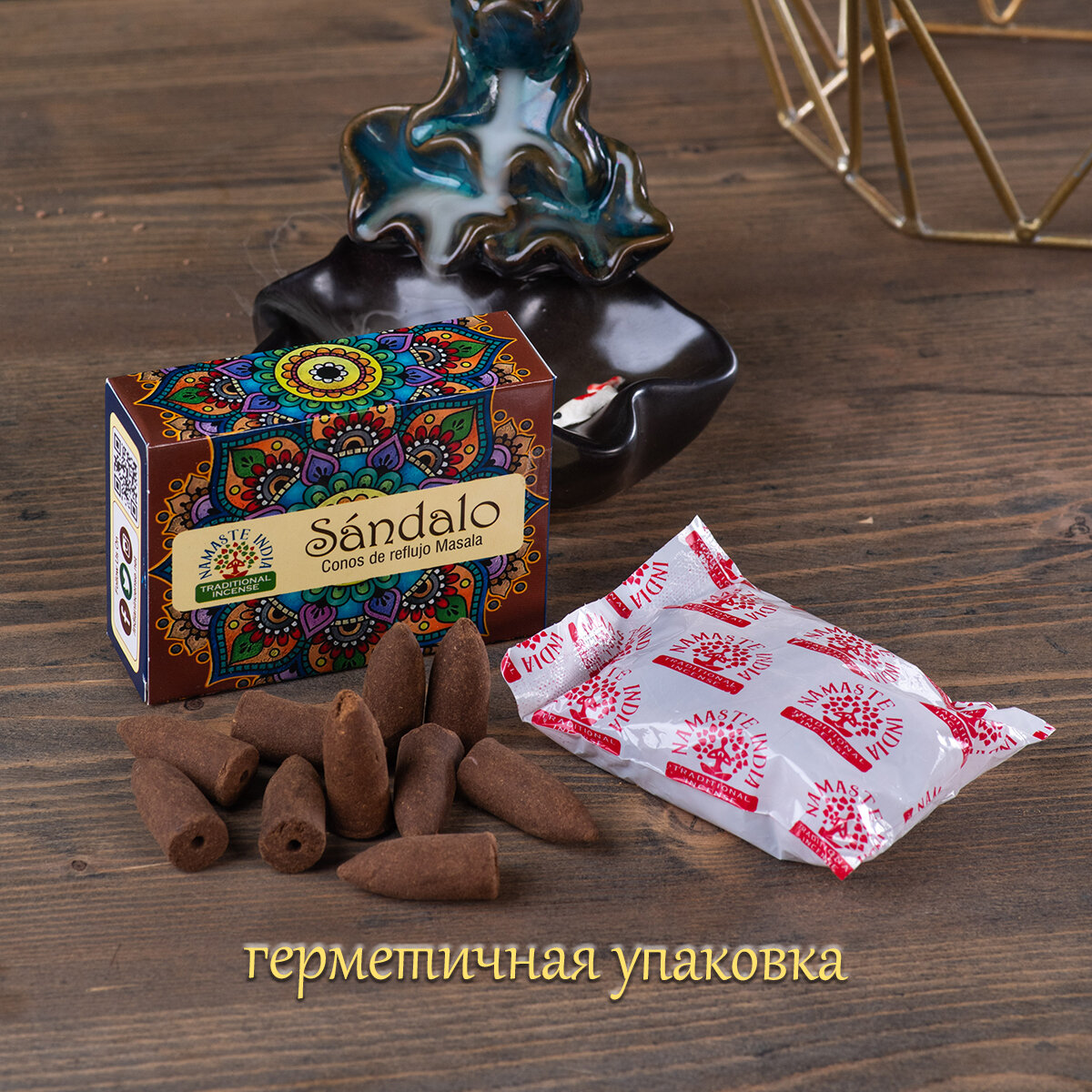 Благовония Orkay Сандал Sandalwood ароматические конусы стелющийся дым, 1 уп 10 шт, 35 г