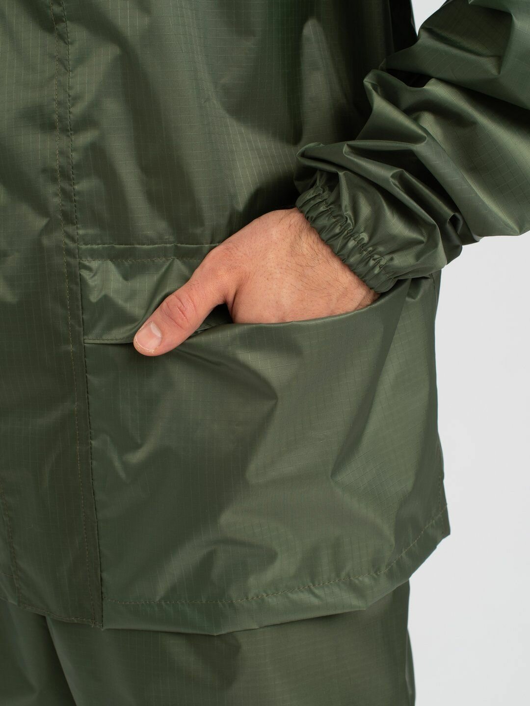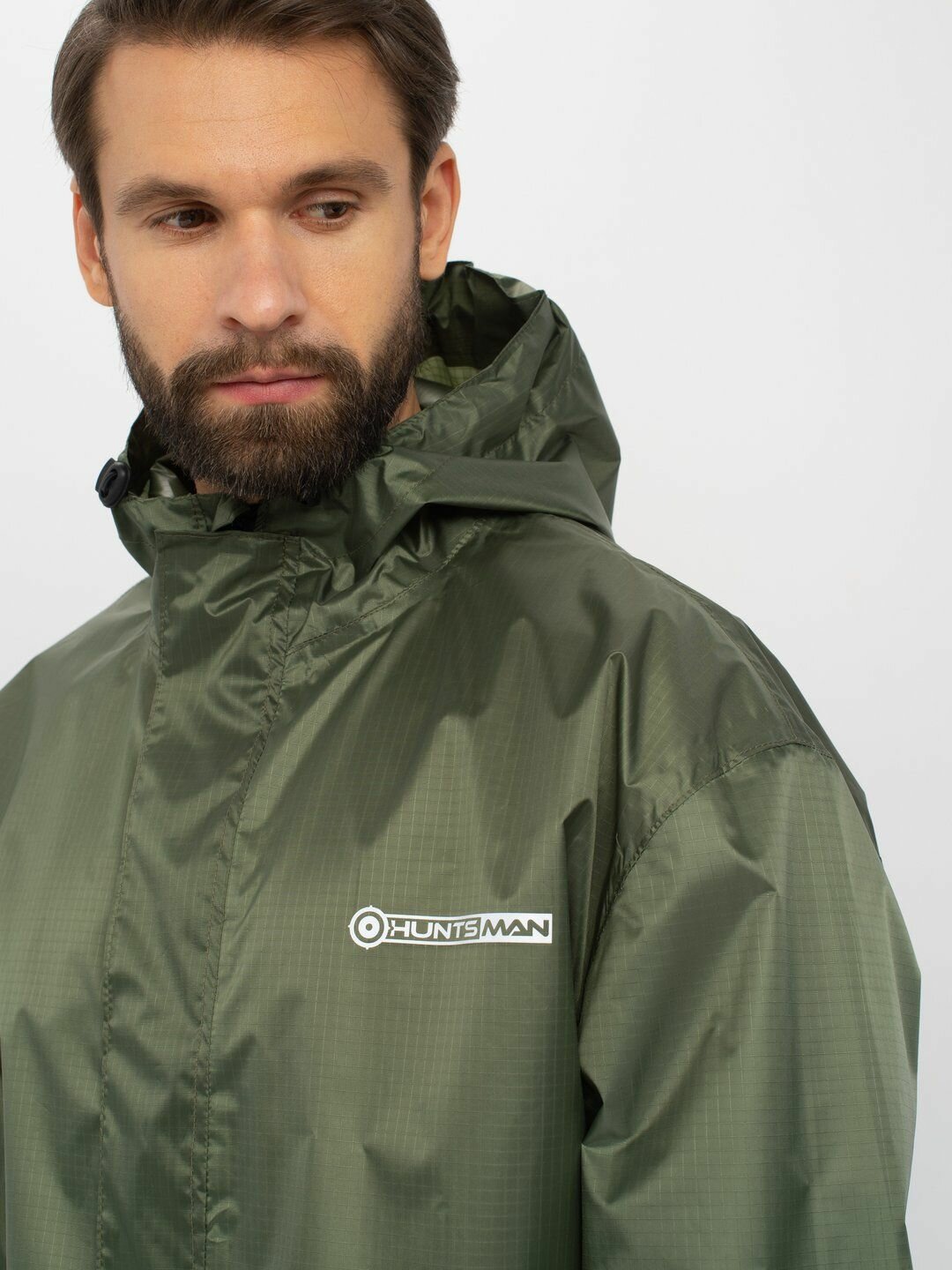 Костюм-дождевик мужской Huntsman ВВЗ Склон-2 летний ветровлагозащитный туристический, для рыбалки и охоты зеленый, ткань таффета рипстоп (р.44-46/170)