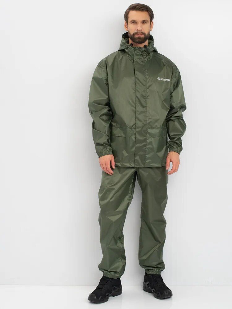 Костюм-дождевик мужской Huntsman ВВЗ Склон-2 летний ветровлагозащитный туристический, для рыбалки и охоты зеленый, ткань таффета рипстоп (р.48-50/176)