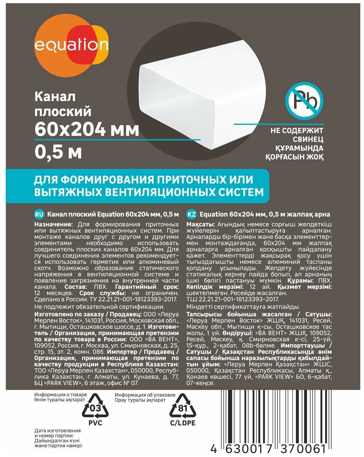 Купить Воздуховод плоский Equation 60x204 мм 0.5 м
