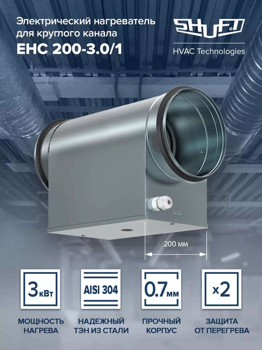 Электрический нагреватель для круглого канала SHUFT EHC 200-3,0/1 интересное: