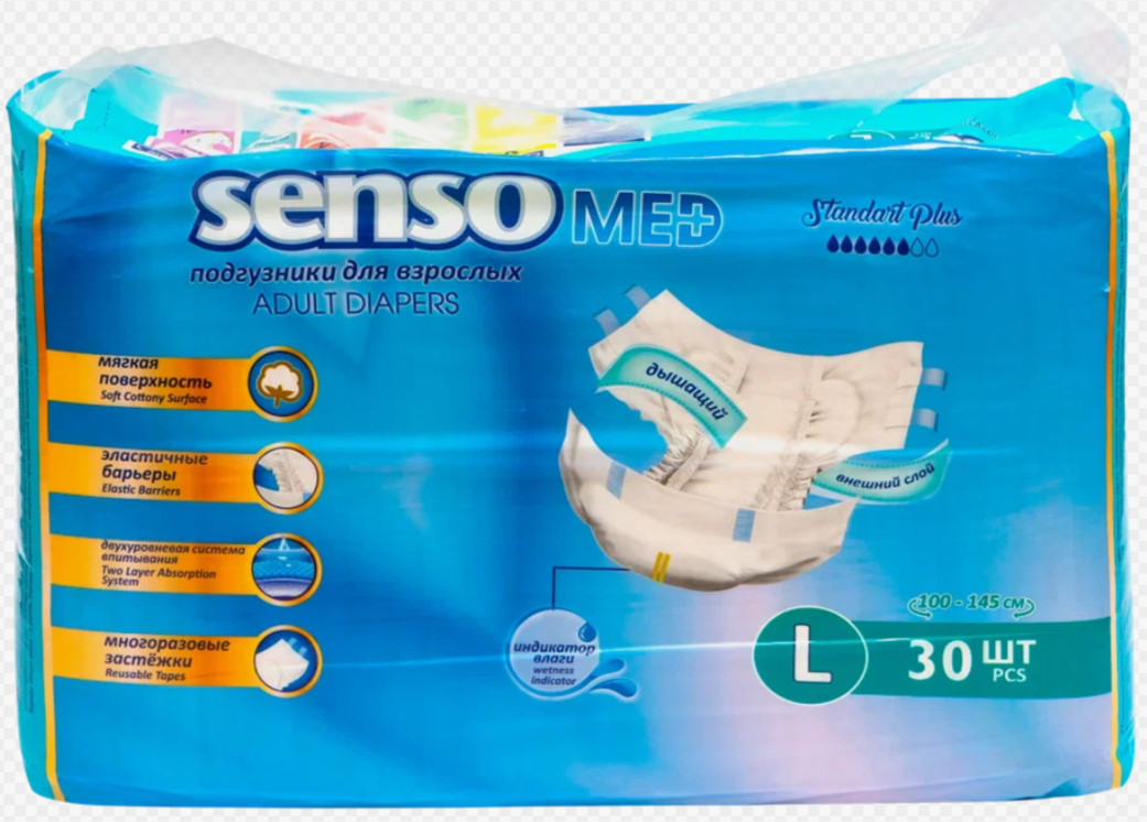 СохранитьПодгузники для взрослых Senso Med Standart Plus, впитываемость 2200мл, размер L(100-145 см), 30 шт. интересное: