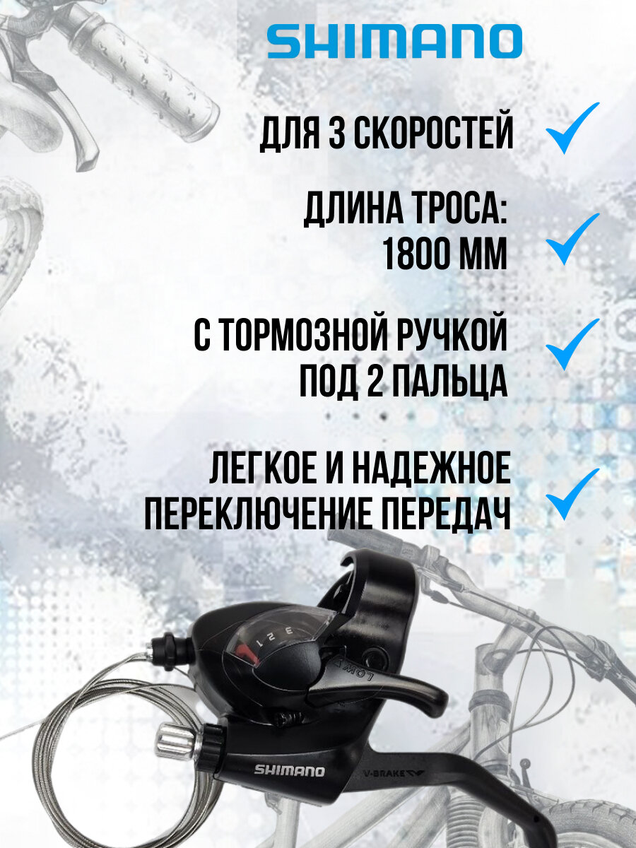 Шифтер, ручка тормоза Shimano ST-EF41, серия Tourney, 3 скорости, под левую руку, трос 180 см, черный